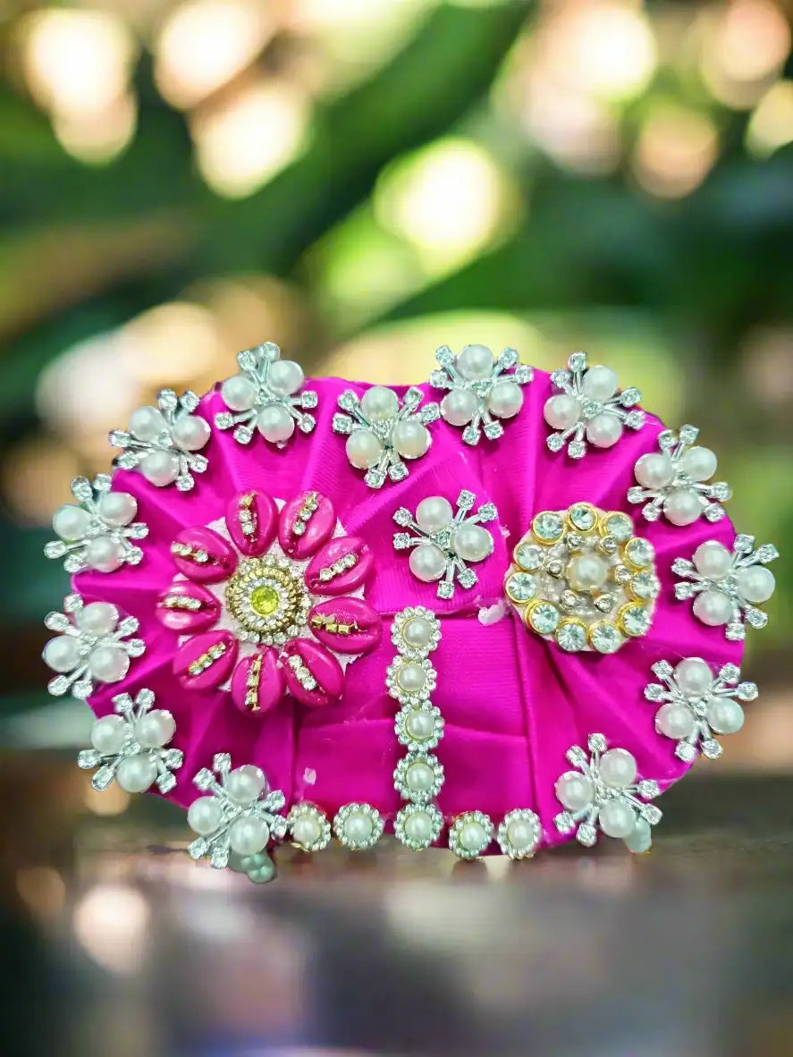Beautiful Laddu Gopal Pagdi Size 12, crafted with premium materials and traditional design. Perfect for adorning large Laddu Gopal idols with royal elegance and divine beauty.