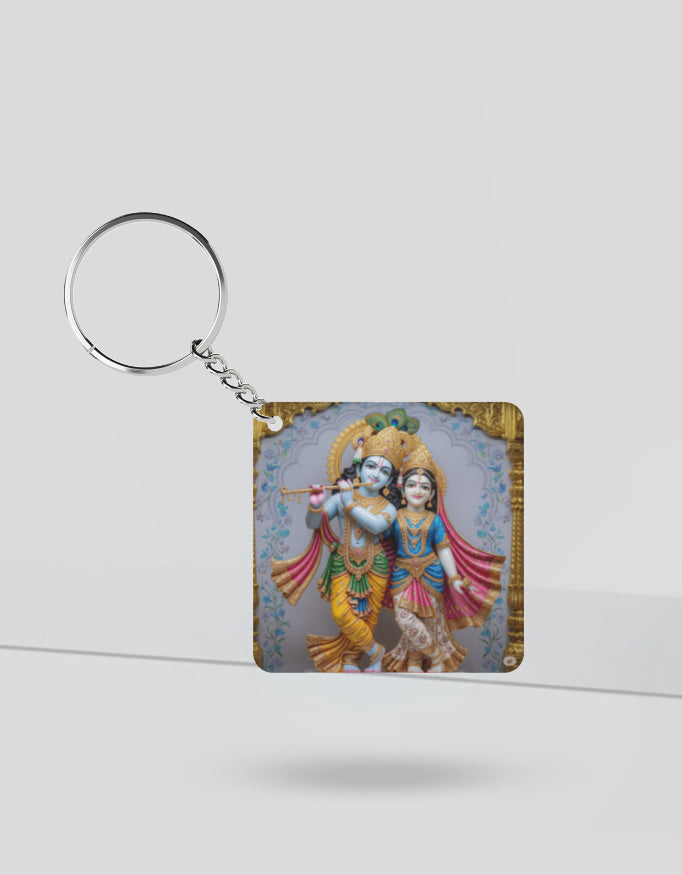 Get inspired by the divine love of Radha and Krishna with this beautiful keychain. Made with high-quality material and intricate design, this keychain adds touch of elegance and spirituality to your everyday items. Carry the blessings of Radha and Krishna with you wherever you go.